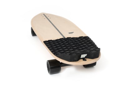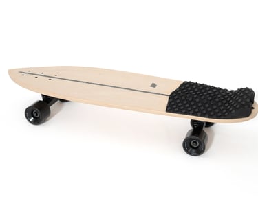 El deck tiene un cóncavo suave en toda su superficie, ofreciendo una sensación de apoyo natural y facilitando inclinaciones progresivas para una experiencia más fluida. Combinado con el grip transparente, que imita la parafina en la tabla de surf, mejora el agarre sin sacrificar la sensación de deslizamiento del surf.
