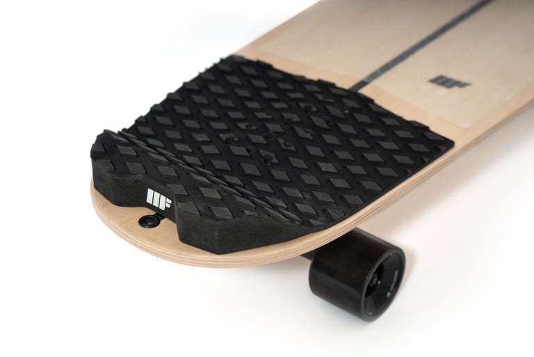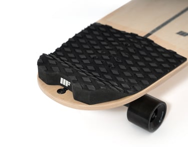 Nuestro TRACTION PAD mejora la memoria muscular, ayudando a colocar el pie correctamente en todo momento. Su diseño exclusivo se adapta al cóncavo de la tabla, ofreciendo mejor presión en la cola para giros más cerrados, como en una tabla de surf. Ideal para corregir errores al subir y bajar del surfskate.